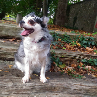 Et oui, j'ai bien un parc en bas de chez moi mais je n'y vais jamais ! Parce qu'il y a beaucoup trop de chien là-bas et que les gens les lâches dès l'entrée du parc sans vérifier si il y a du monde et je ne veux pas prendre de risque pour mes bébés ! Et puis bon on a juste droit à l'allée que l'on voit sur les photos, le reste est réservée aux enfants et donc interdite au chiens. Mais ça reste sympas à l'occasion !